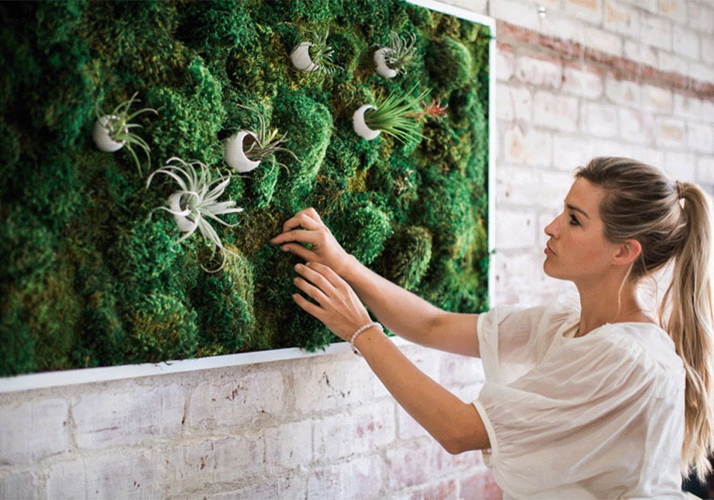 Nie wszystkie rośliny muszą stać na parapecie. Spróbuj dodać do ścian trochę zieleni i naturalnych elementów, używając roślin naściennych lub wiszących. Jeśli nie przepadasz za wodą, możesz zamiast tego wybrać wysokiej jakości sztuczną roślinę – nikt się o tym nie dowie.