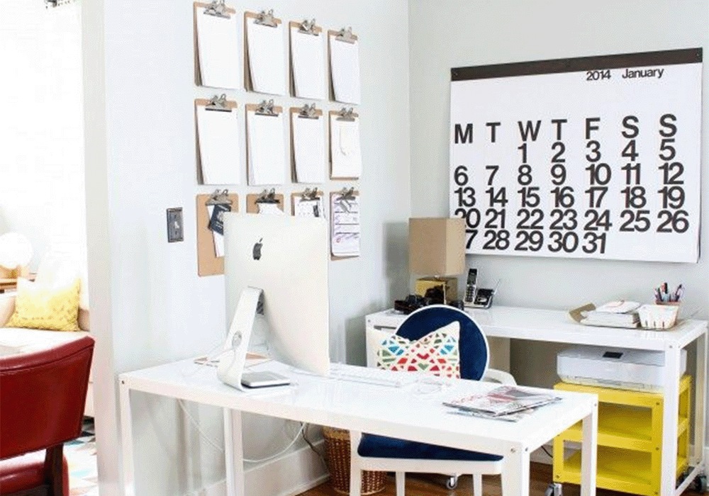 Duże kalendarze świetnie wyglądają zamontowane na ścianie biura lub kuchni. Organizuj swoje spotkania i jednocześnie rozjaśnij przestrzeń, dodając coś wyjątkowego. Spróbuj użyć czcionek bezszeryfowych w żywych, mocnych kolorach, aby nadać swoim kalendarzom nowoczesny wygląd i odrobinę koloru.