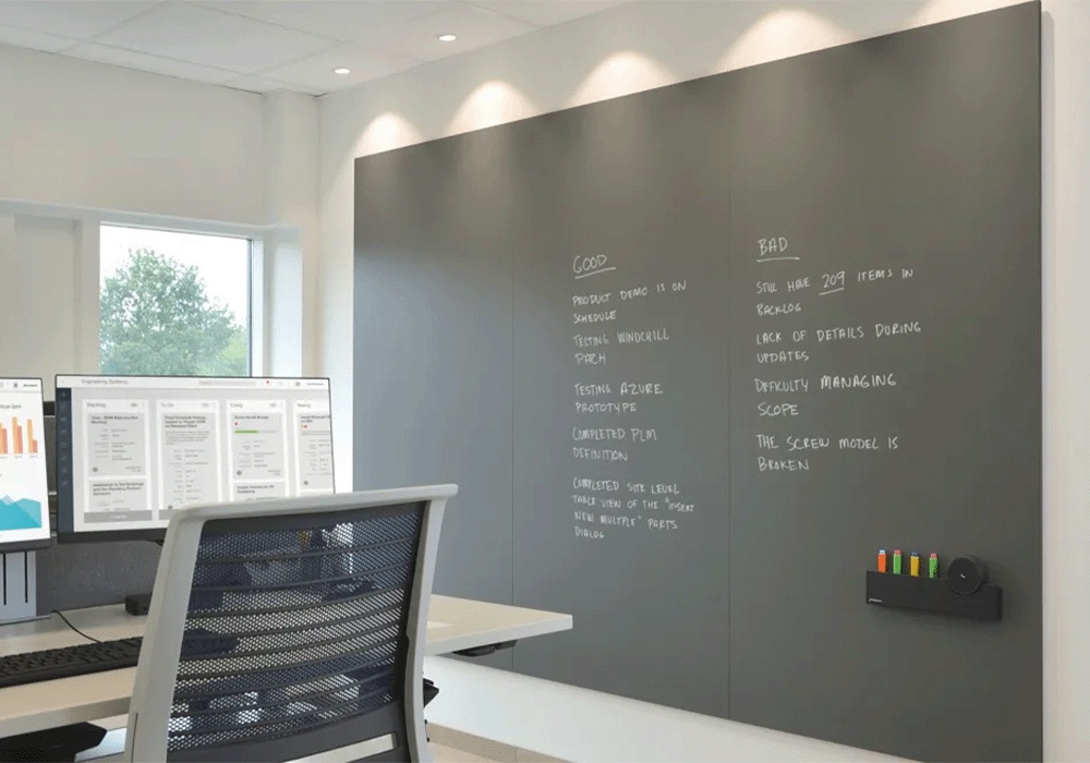Duża tablica to przydatny dodatek na plac zabaw, do biura czy kuchni. Tablica to bardziej nowoczesna opcja, która nie musi ograniczać się do bieli; można go dostosować za pomocą różnych kolorów i wzorów. Tablice kredowe dodają rustykalnego charakteru każdej przestrzeni. Aby pójść dalej, pomaluj całą ścianę za pomocą WriteWallPaint, który tworzy powierzchnię do pisania.