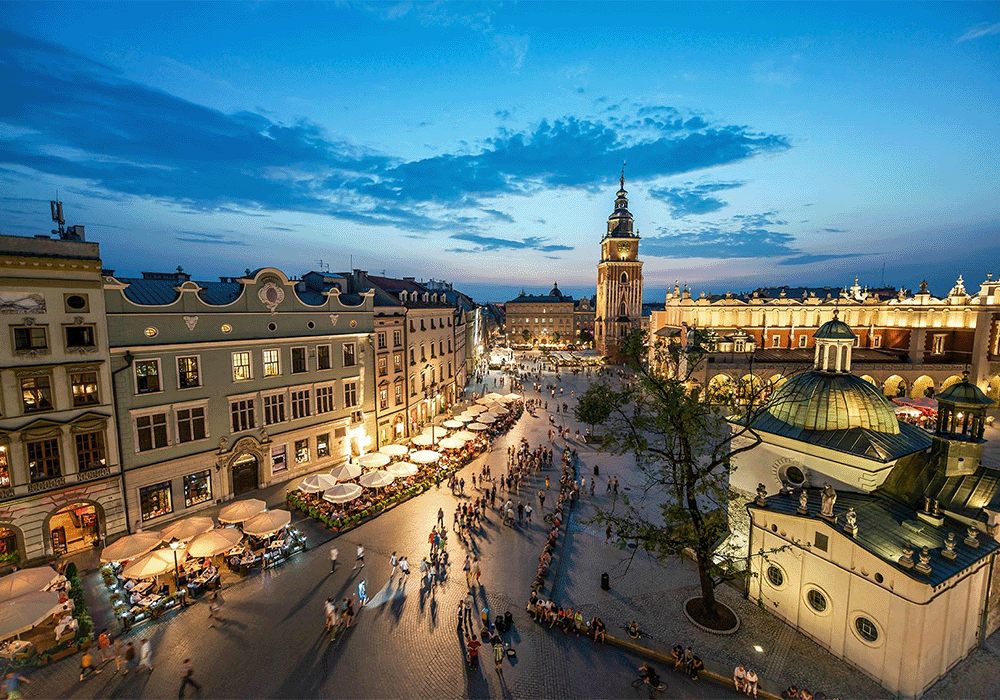 Od średniowiecza krakowski Rynek Główny – największy w Europie Środkowej – był centrum życia politycznego i społecznego miasta. Ze względu na doskonałą atmosferę renesansu, odzwierciedloną w Sufkiennence, Bazylice Mariackiej oraz modnych kawiarniach i pubach, jest to najwspanialsza lokalizacja dla turystów odwiedzających Polskę. Kraków ze względu na swoją niesamowitą architekturę może poszczycić się jedną z najpiękniejszych ulic na świecie.